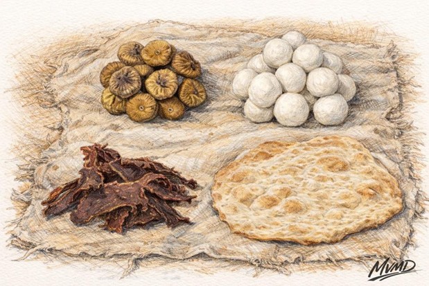 In hotter or poorer regions, curds are dried even further. Pressed cheeses may be cut into small blocks or pellets and sun-dried until stone-hard. These products resemble qurut / kurut (Central Asian dried curd) or chhurpi (hard Tibetan cheese). Such cheeses are famously durable, sometimes kept for years, and are often softened only by long soaking or by being simmered directly in soups. On Athas, this form of cheese is especially common in caravans, garrisons, and remote settlements, where its near-indestructibility outweighs its difficulty to eat.