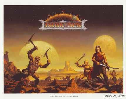 In the early 90's a set of Dark Sun art prints were given to game store owners to promote the unique art of Dark Sun.